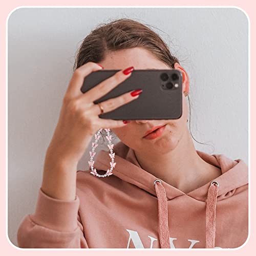 Materiale premium: i braccialetti telefonici sono realizzati con perle di farfalle in cristallo artificiale (resina) e perle artificiali, collegate da forti corde, super resistenti e ferme, non facili da rompere.Abbastanza forte e affidabile da impedire al tuo dispositivo di cadere o di essere rubati.