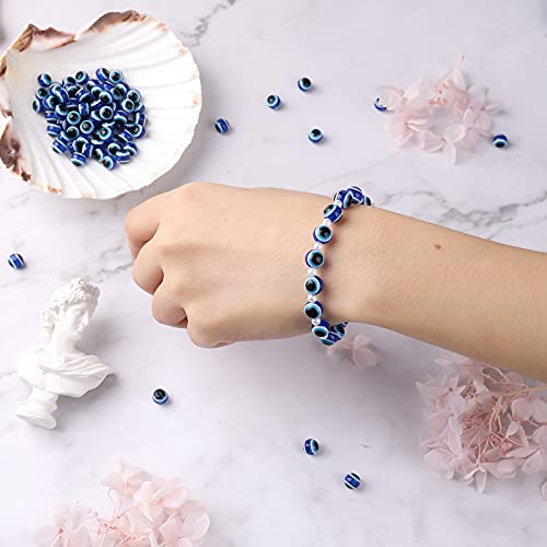 SAVITA 150 Pezzi Blu Perline di Malocchio Bulbo Oculare Distanziatore Perline Resina Perline Fatte a Mano Charms per Bracciali Fai da Te Collana Creazione di Gioielli (8mm)