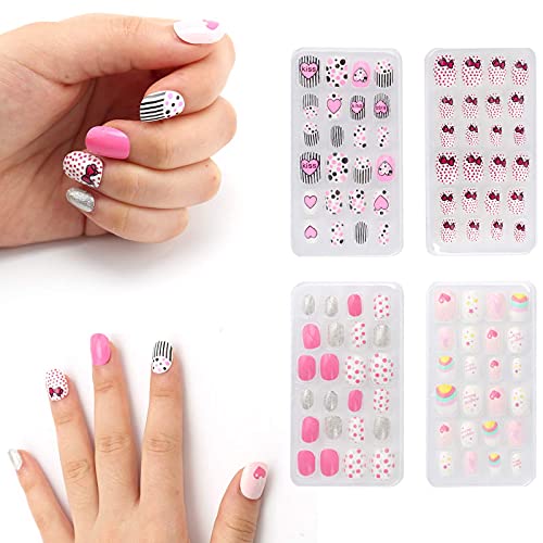 SAVITA 96 Pezzi 4 Scatole Unghie Finte per Bambini Unghie Finte Corte Pre-Colla Colorate Unghie Finte per Ragazze Bel Regalo per Bambini Decorazione per Unghie