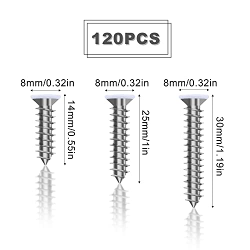 Contenuto del pacchetto: riceverai viti bianche da 120 pezzi, n. 8 di diametro, disponibili in 3 lunghezze: 14 mm/0,55 pollici, 25 mm/1 pollice, 30 mm/1,19 pollici, 40pc per dimensione.Molto in una gamma completa di dimensioni per l'uso e la sostituzione quotidiani e le esigenze condivise.