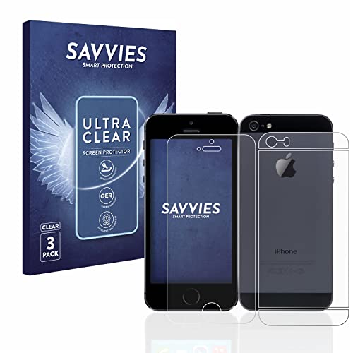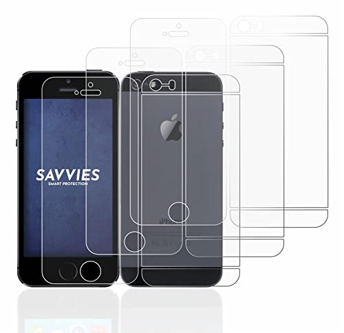 Savvies 6-Pezzi Pellicola Protettiva Compatibile con Apple iPhone 5 / 5S / 5C / SE 2016 (Anteriore + Posteriore) Protezione Schermo Trasparente