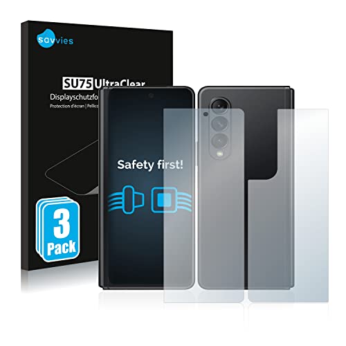 Savvies 6-Pezzi Pellicola Protettiva compatibile con Samsung Galaxy Z Fold 3 5G (Fronte+Retro) Protezione Schermo Trasparente