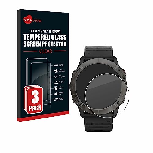 Savvies Pellicola Vetro Temperato compatibile con Garmin Fenix 6X Pro Solar (3 Pezzi) Protezione, Schermo Protettivo, Glass Durezza 9H