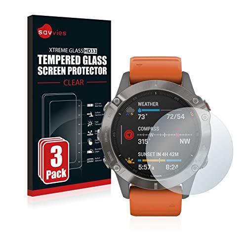 Savvies Pellicola Vetro Temperato compatibile con Garmin Fenix 6 (3 Pezzi) Protezione, Schermo Protettivo, Glass Durezza 9H