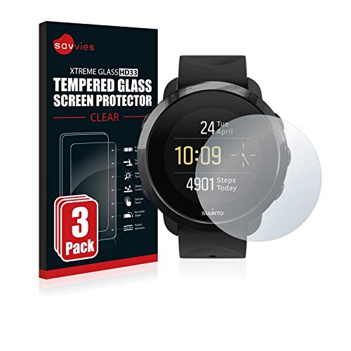 Savvies Pellicola Vetro Temperato compatibile con Suunto 3 Fitness (3 Pezzi) Protezione, Schermo Protettivo, Glass Durezza 9H