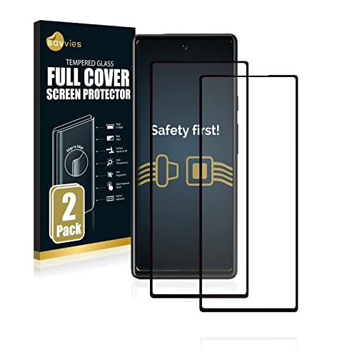 Savvies Vetro Temperato compatibile con Google Pixel 6 (2 Pezzi) Copertura Completa Pellicola Protettiva, Nero