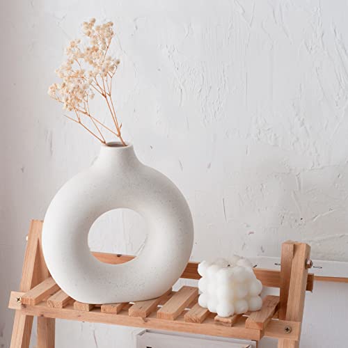 Sawoake Vaso in ceramica a ciambella bianca per moderna decorazione domestica, vasi rotondi opachi per erba della pampa, neutro boho nordico minimalismo stile vasi di fiori (grandi)