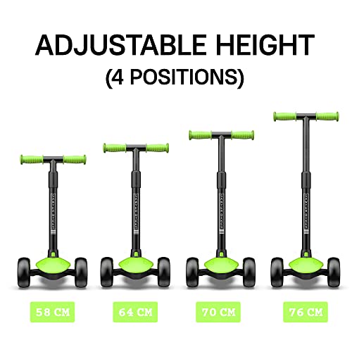 CRESCE CON IL TUO BAMBINO: Il manubrio di questo monopattino a 3 ruote dispone di 4 impostazioni regolabili (58 cm, 64 cm, 70 cm e 76 cm) che consentono al monopattino per bambini di crescere con tuo figlio, a partire da un'età di 2 anni.