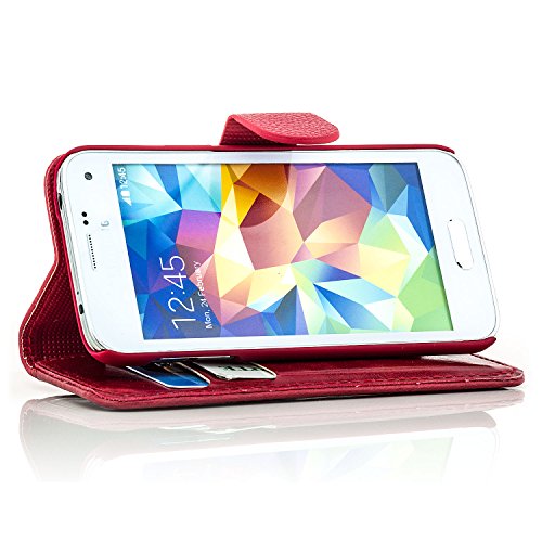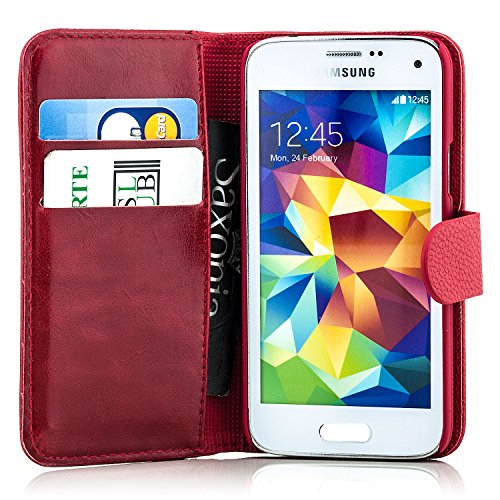 Saxonia Custodia Portafoglio per Samsung Galaxy S5 / S5 Neo Flip Case Cover protezione di qualità e Book Design di lusso Rosso