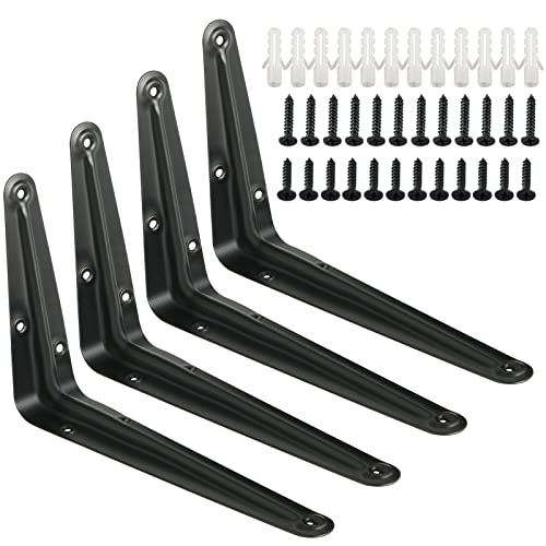 Sayayo Staffe per Mensole Staffa supporto Pesanti Staffe a L per Mensole Staffa Mensola da Parete Squadrette Angolari 195 mm * 125 mm, Nero, 4 Pezzi, EJB3008B-4P
