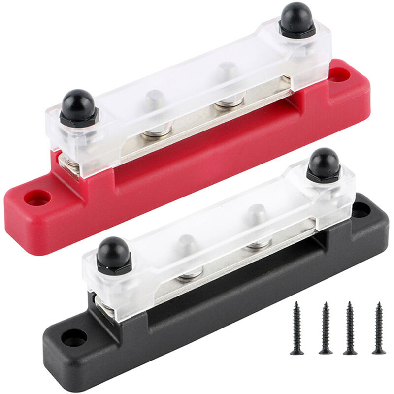 Specifiche: Colore: Nero+ Rosso Tensione massima: 300V AC/48V DC Valutazione continua: 130A AC/150A DC Materiale: base in nylon&Coperchio in PC Perno terminale: M6 * 4 Dimensioni prodotto: 12 * 5 * 8 cm Peso prodotto: 190 g Elenco pacchetti: 1 * Bus Bar 1 * Set di accessori