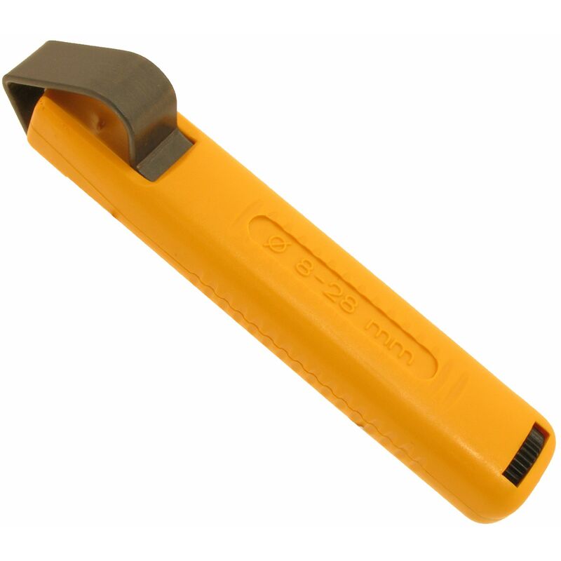 Piergiacomi sguaina cavo per cavi Ø 8-28 mm con lama interna regolabile. Fornito con una lama di ricambio all'interno. Peso 70 gr. Lunghezza 140 mm. Prodotto di ottima qualità.