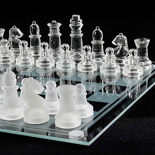 Set di scacchi in vetro fine a scacchi in vetro massiccio e scacchiera in cristallo specchio 25,4 x 25,4 cm, regalo per ragazzi e adulti