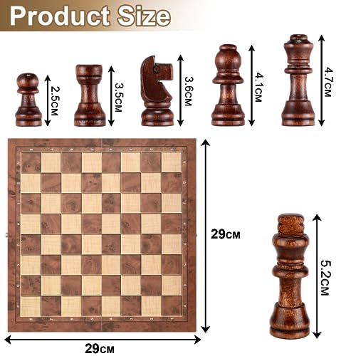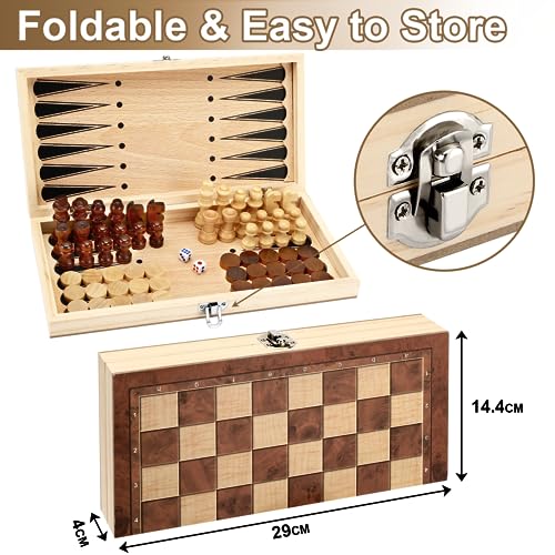 Scacchiera in Legno,3 in 1 Scacchi Dama Backgammon, Pieghevole Scacchiere per Bambini e Adulti, Portatili Scacchi per Viaggio Famiglia Festa - 29x29x2cm