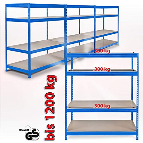 Scaffalatura larga, scaffalatura per carichi pesanti, cantine, in metallo, per ufficio. (Mammut: 200 x 180 x 60 cm, blu).