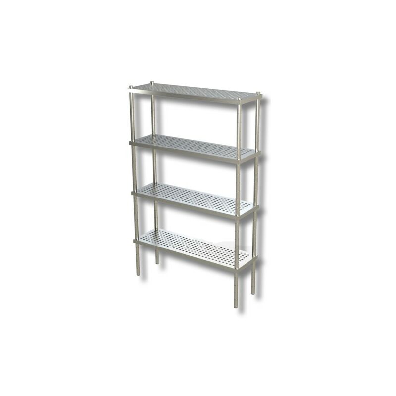 Codice RS7811 - Scaffalatura 4 ripiani forati modello RP-DSSCFE13520, dimensioni cm. 130x50x200 (lxpxh), altezza totale cm. 200. Realizzazione in acciaio inox, gambe tonde. Fornito in kit smontato.
