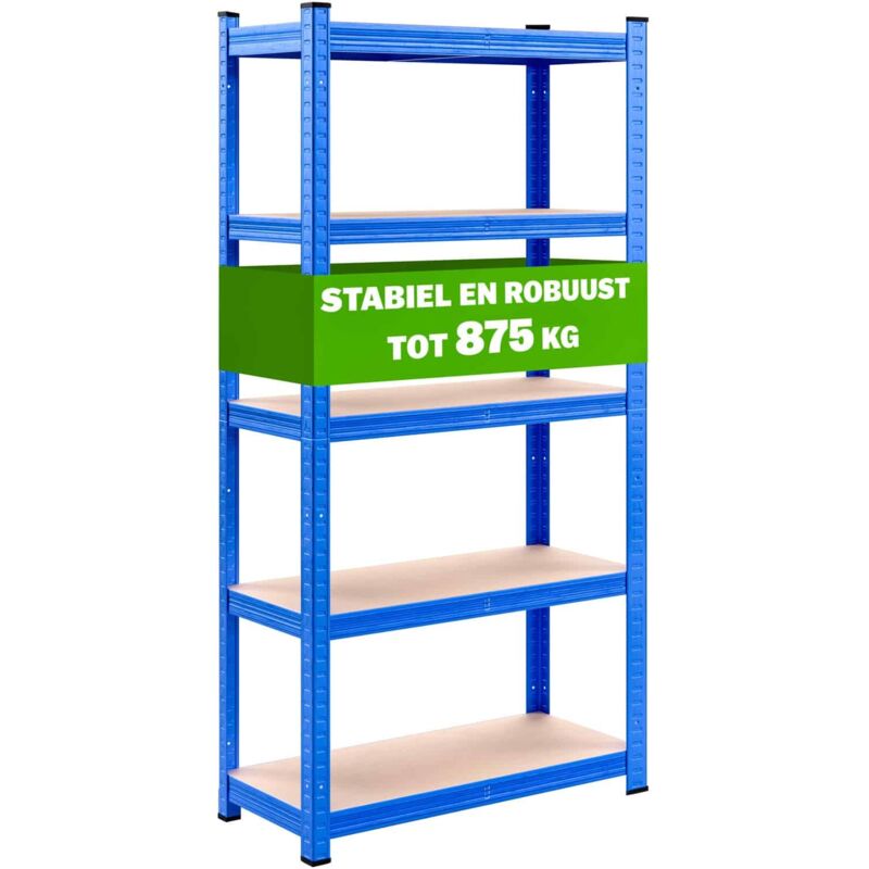 Lo scaffale per carichi pesanti con rivestimento in polvere ha 5 ripiani (MDF), ciascuno con 175 kg (875 kg per ripiano) con distribuzione uniforme del carico. Vantaggi del prodotto: - Ripiano metallico con sistema plug-in - adatto per il montaggio a parete - Puntoni trasversali per la stabilizzazione - Costruzione metallica, verniciata a polvere - I 5 piani MDF possono essere montati in modo variabile - Capacità di carico di 175 kg per piano con distribuzione uniforme del carico - 875 kg per scaffale - conversione su un banco di lavoro possibile (vedi foto) Dati tecnici: - Dimensioni (HxLxP): 180 cm x 90 cm x 40 cm - Peso: 13 kg - Numero di piani: 5 - Pavimenti materiale: MDF - Telaio materiale: metallo verniciato a polvere - Colore: blu - Capacità di carico per piano: 175 kg - con distribuzione del carico uniforme - Capacità di carico per scaffale: 875 kg - con distribuzione del carico uniforme La fornitura comprende: - 1 scaffale con - 4 piedini in plastica - 5 ripiani in MDF - 10