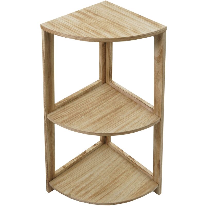 Scaffale portaoggetti angolare con 3 ripiani modello HWC-K44 legno di paulonia colore NATURALE Con i suoi tre ripiani, questo scaffale offre spazio sufficiente per riporre libri, oggetti decorativi, piante o altri oggetti personali. Grazie al suo design angolare, è adatto a sfruttare lo spazio inutilizzato in un angolo e, allo stesso tempo, a creare un accento decorativo nella stanza. In bagno, nella cameretta dei bambini, nel corridoio o in cucina, fa la sua bella figura ovunque. Grazie al design moderno e senza tempo, questo scaffale angolare si adatta in modo decorativo a quasi tutti gli ambienti. Gli elementi in legno sono stati realizzati principalmente in legno di paulonia, un tipo di legno di alta qualità già coltivato anche in Europa, chiamato anche l'alluminio del legno per la sua leggerezza e l'elevata stabilità. pratico e decorativo 3x ripiani con protezioni in plastica per pavimento consegna senza decorazioni struttura in legno di paulonia, certificato MVG (RR-COC-002479)