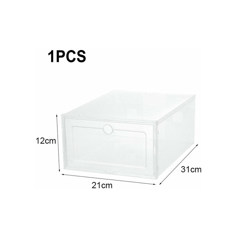 Dimensioni: 31*21*12 centimetri/33*23*14 centimetri Colore: Bianco Materiale: PP Il pacchetto include: Scatola per scarpe 1/6 x Caratteristiche: ** Applicazione: Adatto per riporre scarpe fino alla taglia 40 (non consigliato per sneaker) /adatto per riporre scarpe fino alla taglia 44 (non consigliato per scarpe alte) ** Pratico e conveniente: Mantieni le tue scarpe senza polvere e ben organizzato con un contenitore per scarpe impilabile ** Design frontale trasparente: Il design frontale trasparente ti consente di trovare le scarpe immediatamente senza apertura, la porta d'ingresso può facilmente aprire afferrare e andare. ** Impilabile: Design impilabile per aiutare a migliorare il tuo spazio ** Traspirante: La ventilazione garantisce la circolazione dell'aria e la prevenzione degli odori, i contenitori per scarpe traspiranti sono freschi ** Facile da usare: Con design a chiusura a scatto, puoi mettere insieme la scatola di immagazzinaggio delle scarpe ** Ampiamente utilizzato: Ideale