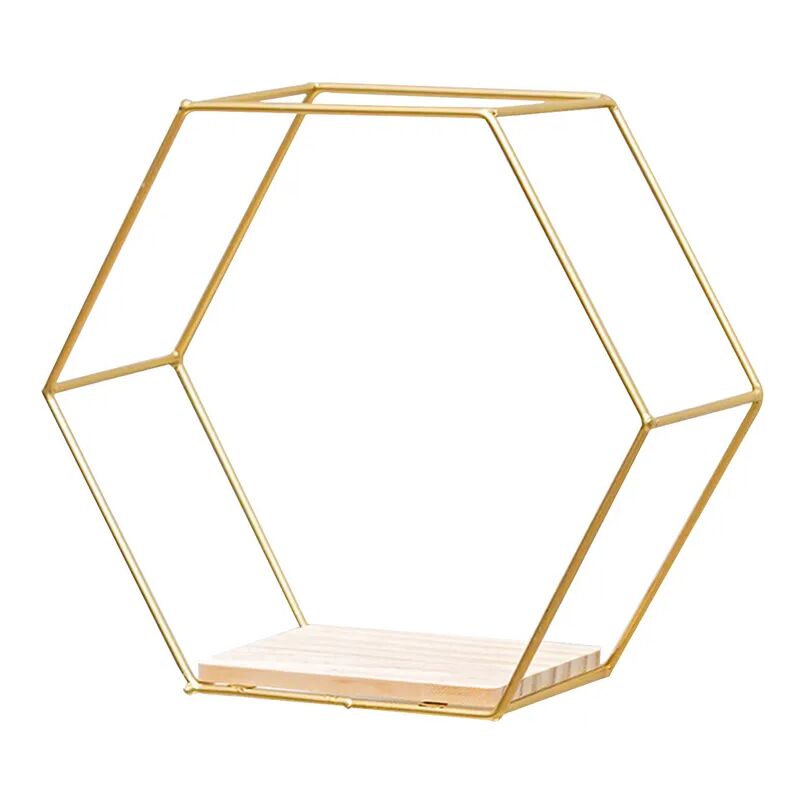 Descrizione: Saldatura senza soluzione di continuità e motivo a doppio esagono, questo portaoggetti in ferro è squisito, elegante e ideale per decorare la tua parete. Con un forte rinforzo, solido e robusto, questo scaffale esagonale può contenere piccoli oggetti vari per mantenere la tua stanza pulita e ordinata.Realizzato in ferro e legno, questo scaffale esagonale è durevole e resistente all'usura.Ci sono 3 taglie disponibili tra cui scegliere, vale a dire S, M e L. È adatto a casa, ristorante, ufficio, biblioteca, hotel, ecc. (circa) Medio: 24 cm x 9,5 cm x 20,5 cm/9,45" x 3,74" x 8,07" (circa) Grande: 28 cm x 10,5 cm x 25 cm/ 11,02" x 4,13"" x 9,84" (circa) Note: Questa mensola è appesa al muro con chiodi senza cuciture e non ha fori per i ganci. A causa della differenza di impostazione della luce e dello schermo, il colore dell'articolo potrebbe essere leggermente diverso dalle immagini. a diverse misurazioni manuali. Contenuto della confezione: 1 x mensola esagonale (altri non