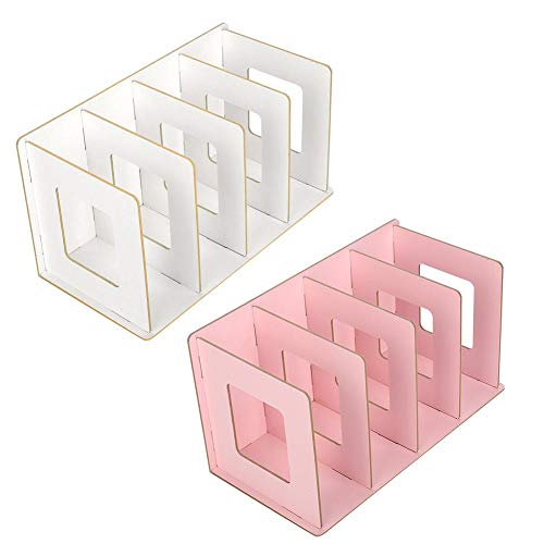 Scaffale in legno da scrivania a 4 sezioni per libri, CD, DVD, riviste, reggilibri, per ufficio, studenti, bambini e adulti rosa chiaro