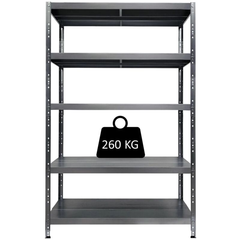 Scaffale Metallo Maciste 120 X 50 X 234h 5 Piani ad incastro KG 260 cad. Scaffale ad alta portata di 260 Kg. per ripiano. Scaffalatura metallica in kit di facile montaggio ad Incastro. Ripiani con altezza regolabile per una massima gestione della capacità. Aumenta la capacità in orizzontale o in verticale. Ideale per Casa, Ufficio, Garage o Magazzino. Robusto e durevole con finitura zincata. I piedi in gomma garantiscono una resistenza allo slittamento e una maggiore stabilità. Prodotto Made in Italy.