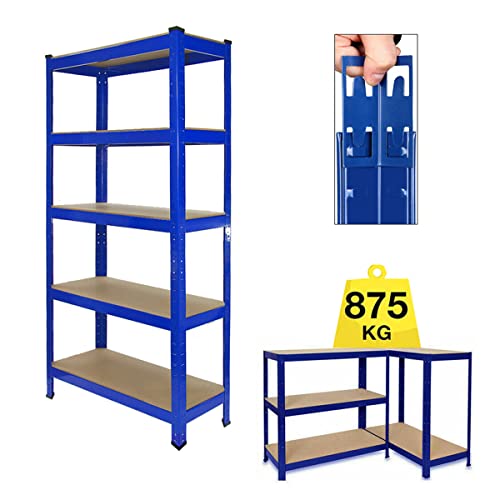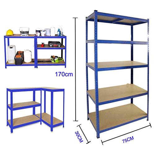 Scaffale metallico per garage e cantina, 170 x 75 x 30 cm, scaffale per garage, cantine, con 5 ripiani (ripiani in MDF, portata massima 875 kg, per carichi pesanti