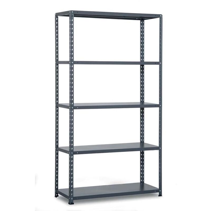 Scaffale metallico 5 ripiani, a bullone, ripiani rinforzati, portata max a ripiano 65 kg, colore grigio martellato, cm 100x40xh.188