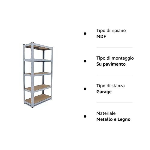 Scaffale In Metallo E MDF Scaffale Ad Alta Portata Fino a 875 kg Con 5 Ripiani Regolabili Ideale Per Garage Officina Cantina Capannone Magazzino Design Modulare 180 x 90 x 40 cm