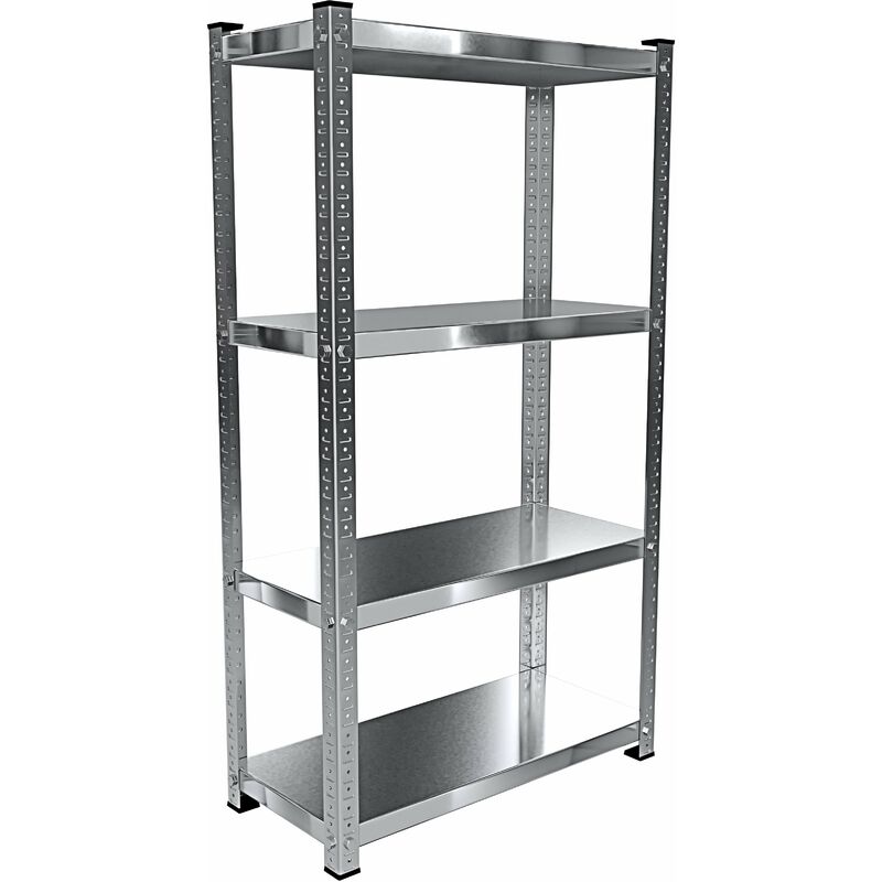 Scaffalatura Yorkville con 4 ripiani in metallo. Ideale per garage, officine, cantine o magazzini. Grazie alla sua portata è in grado di immagazzinare qualsiasi tipo di oggetto. Di facile montaggio grazie alla struttura a bullone. Caratteristiche principali: - Dimensioni totali: 150 x 75 x 30 cm (Altezza x larghezza x profondità) - 4 Ripiani realizzati in metallo galvanizzato - Ripiani regolabili in altezza - Antiruggine - Struttura in metallo galvanizzato - Adatto per immagazzinare qualsiasi tipo di oggetto Contenuto della confezione: 1X Scaffalatura con 4 ripiani 1X Manuale di montaggio N.B.: Utilizzare dei guanti in fase di montaggio