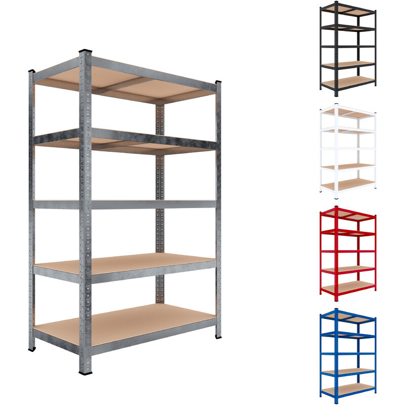 Scaffalatura Jutiapa con 5 ripiani in metallo e MDF. Ideale per garage, officine, cantine o magazzini. Grazie alla sua alta portata di 875 kg è in grado di immagazzinare qualsiasi tipo di oggetto. Di facile montaggio grazie alla struttura senza bulloni (Push-fit) che può essere montata senza l'utilizzo di attrezzi. Caratteristiche principali: - Dimensioni totali: 180 x 90 x 60 cm (Altezza x larghezza x profondità) - Portata massima: 875 kg - 5 Ripiani realizzati in MDF - Ripiani regolabili in altezza - Antiruggine - Costruzione senza bulloni - Struttura in ferro - Adatto per immagazzinare qualsiasi tipo di oggetto - Colore: argento Contenuto della confezione: 1X Scaffalautura con 5 ripiani 1X Manuale di montaggio