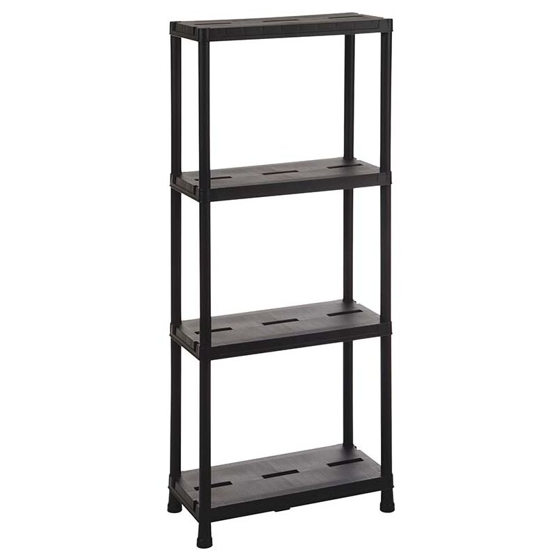 Scaffale multiuso 4 ripiani in resina toomax universal pro 63, colore nero,60x30xh138 cm, portata 25 kg a ripiano, per interni ed esterni, resistente a basse temperature. tempo di montaggio 10 minuti senza utilizzo di attrezzi