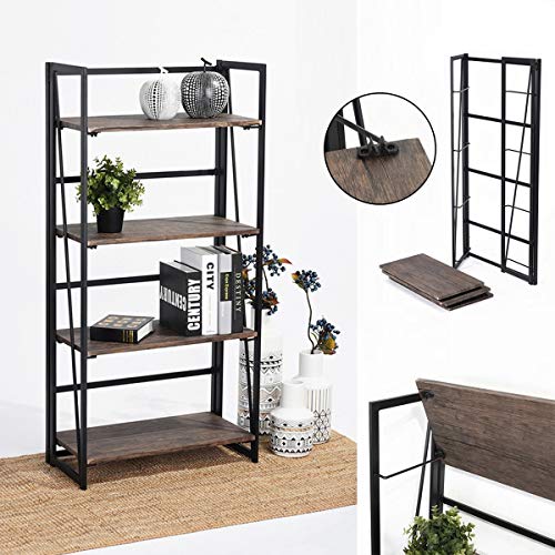 Scaffale Pieghevole Scaffale 4-Tiers Scaffale in Legno Cabinet No-Assembly Espositore Industriale Organizzatore per Libri Piante Cucina