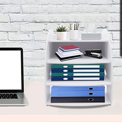 Scaffale porta documenti a 4 scomparti, bianco, per ufficio, cancelleria, organizer da scrivania, scaffale superiore multifunzione