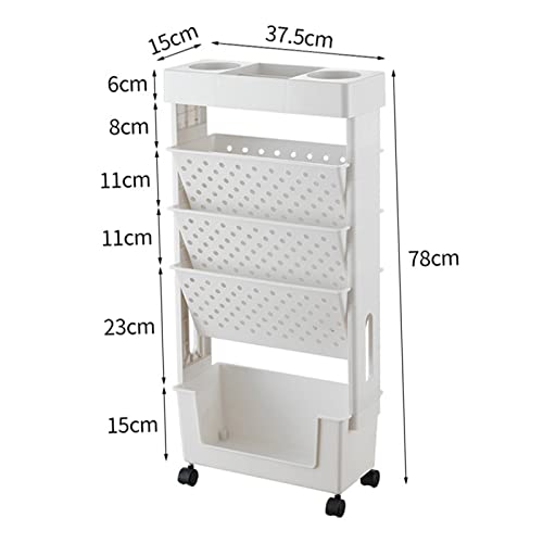 Scaffale Porta Libri a 5 Livelli, Carrello Multiuso Rotante Forniture per Ufficio Organizzatore Desktop con Ruote Scaffali Mobili Portariviste per Ufficio, Dormitorio, Aula, (Bianco)