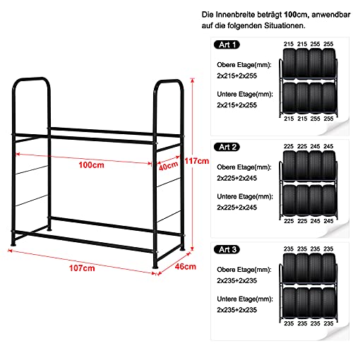 LZQ Scaffale Portagomme Supporto per Pneumatici con Struttura in Scciaio a due Strati per 8 Pneumatici (107 × 46 × 117cm)