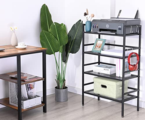 Scaffale portaoggetti regolabile a 4 livelli, scaffale in metallo, scaffale per forno a microonde, scaffale per cucina, soggiorno, lavanderia, con 4 ganci