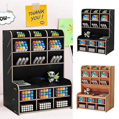 Scaffale Portapenne da Scrivania in Legno Scaffale Multiscomparto per Scrivanie da Ufficio Scuola Studio Forniture per Ufficio a Casa, Cassetti(Nero)