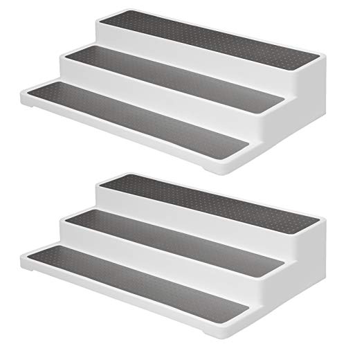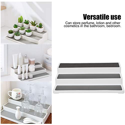 UTILIZZI MULTIPLI: Il supporto per mensole a 3 livelli ha una superficie antiscivolo che mantiene i tuoi barattoli e bottiglie in posizione senza scivolare, puoi utilizzare il ripiano della cucina per conservare profumo, smalto per unghie, lozioni e altri trucchi nel tuo bagno, camera da letto o vanità la zona