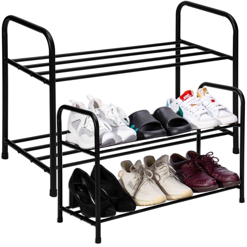 Scaffale per scarpe NORI in metallo, nero, 2 livelli Destinazione d'uso: corridoio, ingresso, ingresso, spogliatoio | Può ospitare 6 paia di scarpe Scarpiera elegante e funzionale, nera, a 2 livelli, in metallo Questa pratica scarpiera non solo introduce un elemento di design moderno nei tuoi interni, ma offre anche una serie di vantaggi pratici che facilitano il mantenimento dell'ordine. La finitura estetica della mensola TIKI la rende adatta ad ogni tipologia di ambiente, dal moderno al tradizionale. ☑️Vantaggi principali ✅Design elegante: l'estetica moderna di questa scarpiera nera si fonde perfettamente con qualsiasi interno, aggiungendo stile e classe. ✅Costruzione durevole: realizzata con tubi in acciaio di alta qualità, collegati con viti solide, garantisce resistenza e stabilità a lungo termine. ✅ Resistenza ai danni: grazie all'utilizzo della verniciatura a polvere, lo scaffale è resistente ai graffi e di facile manutenzione, il che ne garantisce l'aspetto estetico per molti