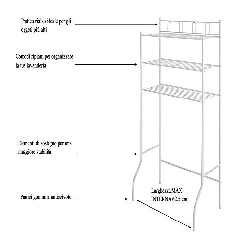 Scaffale Sopralavatrice L.66 cm 3 ripiani in Acciaio Bianco Salvaspazio in KIT DI MONTAGGIO
