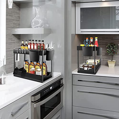 Jianyana-Multifunzione Scaffale Sottolavello Portaoggetti, 2 Strati Organizer Sottolavello Cucina, Portaspezie, Portaoggetti con Cassetti a Scorrevoli Estraibili, Bagno, Scrivania Ufficio