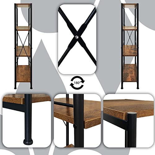 Scaffale Stretto Plus Scaffale Portaoggetti con 4 Ripiani Scaffale Metallo Salvaspazio Scaffalatura Scaffale in Piedi Scaffale a Scala,Bagno Cucina Piccoli Spazi Camera da Letto Nero Acciaio & Legna
