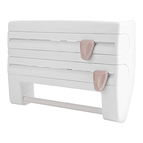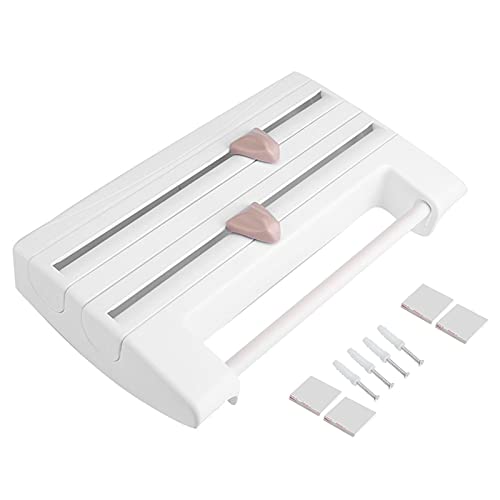 Scaffale per Tagliare Pellicola Trasparente da Cucina e Foglio di Alluminio con Portarotolo da Cucina Montato a Parete per Foglio di Alluminio, Pellicola Trasparente e (Bianco)