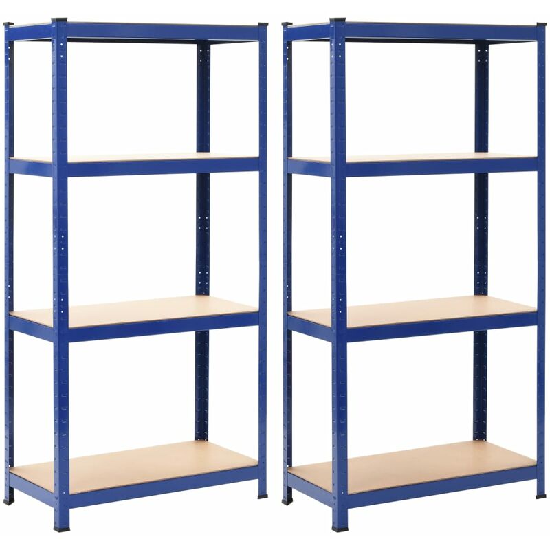 Questo resistente set di scaffalature, costituito da 2 scaffali, è il prodotto ideale per essere utilizzato in cucina, nella lavanderia, in cantina, in bagno, in ufficio o in qualsiasi altro posto dove c'è necessità di avere spazio aggiuntivo per riporre gli oggetti. Questi scaffali sono costruiti in MDF e sono sostenuti da un telaio in acciaio ad alta resistenza con capacità di carico fino a 320 kg. Caratterizzati da un design compatto, gli scaffali sfruttano al massimo anche spazi limitati. Grazie al trattamento di zincatura queste scaffalature sono resistenti alla corrosione e durevoli. Inoltre ognuno di questi versatili scaffali può essere suddiviso in due scaffali separati più piccoli. Gli scaffali sono facili da assemblare. La consegna include 2 scaffali. Colore: Blu Materiale: Acciaio zincato e MDF Dimensioni: 80 x 40 x 160 cm (L x P x A) Capacità di carico totale: 320 kg (80 kg per ripiano) Con 4 ripiani Ciascuno scaffale può essere suddiviso in due scaffali separati più