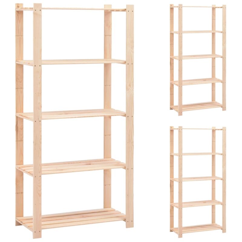 Il nostro solido scaffale in legno è la soluzione ideale sia per la casa e lo stoccaggio commerciale, come ad esempio cucina, lavanderia, cantina, bagno, ufficio, garage, officina, sia in qualsiasi altro posto dove potrebbe essere necessario ulteriore spazio di archiviazione, offrendo tanto spazio per mantenere tutti articoli organizzati in modo ordinato. Realizzato in legno massello di pino, lo scaffale è estremamente resistente! Potrete mantenere il suo colore naturale o passare una mano di vernice o altra finitura del vostro colore preferito. Grazie ai materiali di montaggio inclusi, il nostro scaffale è facile da assemblare. La consegna include 3 scaffali. Materiale: Legno massello di pino Dimensioni: 80 x 38 x 170 cm (L x P x A) Capacità di carico massima: 250 kg (50 kg per ripiano) Inclusi elementi per il montaggio La consegna include 4 appendiabiti ATTENZIONE: Per evitare il ribaltamento questo prodotto deve essere utilizzato con il dispositivo di fissaggio a parete fornito.