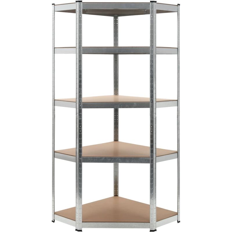 Scaffale di stoccaggio in metallo pesante-- 1. I rack di stoccaggio durevoli sono perfetti per il seminterrato, il garage, l'ufficio e ovunque tu abbia bisogno di più spazio di archiviazione. 2. I ripiani sono realizzati in MDF e supportati da un robusto telaio in acciaio con una capacità di carico fino a 875 kg. 3. Grazie al trattamento zincato, il rack di stoccaggio è estremamente resistente alla corrosione e robusto. 4. Il ripiano angolare a 5 livelli è ideale come ripiano singolo o adiacente ad altri ripiani per creare un sistema di scaffalature. Colore: argento Materiale: acciaio zincato e MDF Dimensioni: 75 x 75 x 180 cm (L x P x A) Capacità di carico totale: 875 kg (175 kg per ripiano)