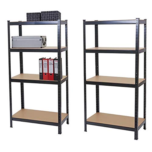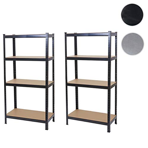 Set 2X scaffali Officina Ufficio HWC-D67 MDF Metallo 40x80x160cm 4X Ripiani Nero