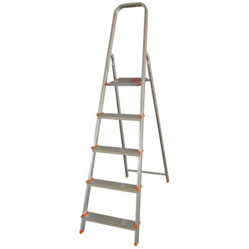 Mod. stella basic in tubolare di alluminio mm 40x20 paracorpo ad arco chiuso 60 cm gradini antiscivolo larghezza 80 mm portata 150 kg a norme europee en 131 n. gradini 5 a cm 169 b cm 108 c cm 184