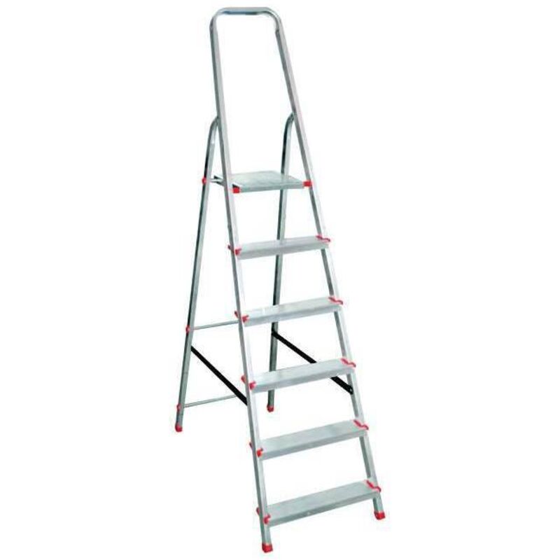 Mod. stella basic in tubolare di alluminio mm 40x20 paracorpo ad arco chiuso 60 cm gradini antiscivolo larghezza 80 mm portata 150 kg a norme europee en 131 n. gradini 7 a cm 217 b cm 156 c cm 236